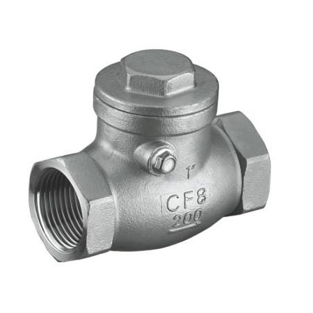 H14W内螺纹旋启式止回阀是由我厂硅溶胶精密铸造阀体。引进国外先进加工的工艺,结构合理、造型美观。阀座采用弹性密封结构,启闭轻松密封可靠。用来防止管路中的介质倒流。适用介质为:水、油品、蒸汽、酸性介质等。